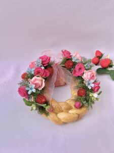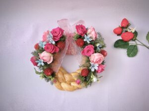 ものすごく上手に焼き上がったパンリースを持ちこんでいただいた時は、初めての試みでしたのでうまく装飾できるのか心配でした。